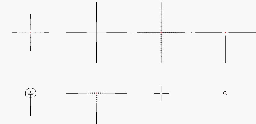Urządzenie posiada szeroką gamę różnego rodzaju siatek celowniczych, w tym celowniki balistyczne.
