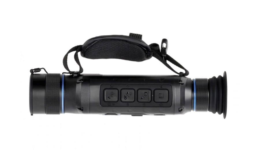 Dzięki podstawowemu powiększeniu 2,5x zapewnia wysoką jakość obrazu przy średnich odległościach i duże pole widzenia. Pomimo swojej mocy, jest poręczny i lekki dzięki obiektywowi o średnicy 25 mm i wadze zaledwie 360 g. Wysokiej rozdzielczości przetwornik obrazu 480x360px @ 12µm zapewnia niezwykle ostre obrazy nawet w ciągu dnia i pozwala dostrzec najdrobniejsze szczegóły.