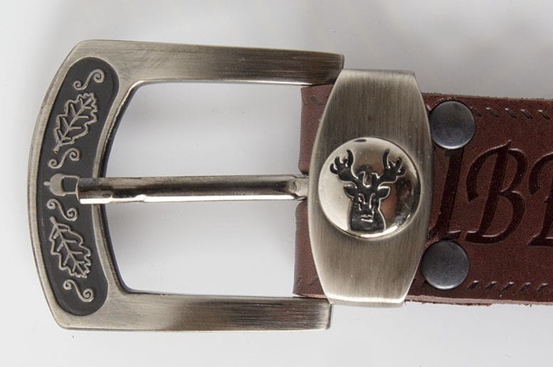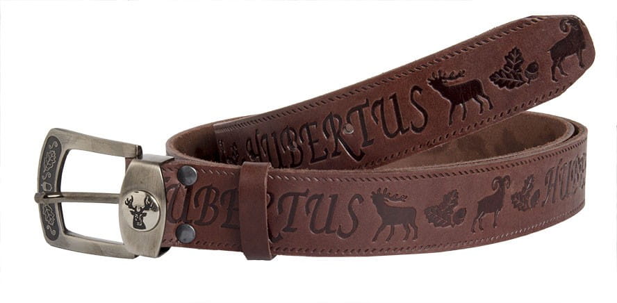 Elegancki myśliwski skórzany pasek wykonany z wysokiej jakości skóry z wytłoczonym motywem i klamrą. Klamra wykonana jest z polerowanej stali nierdzewnej.