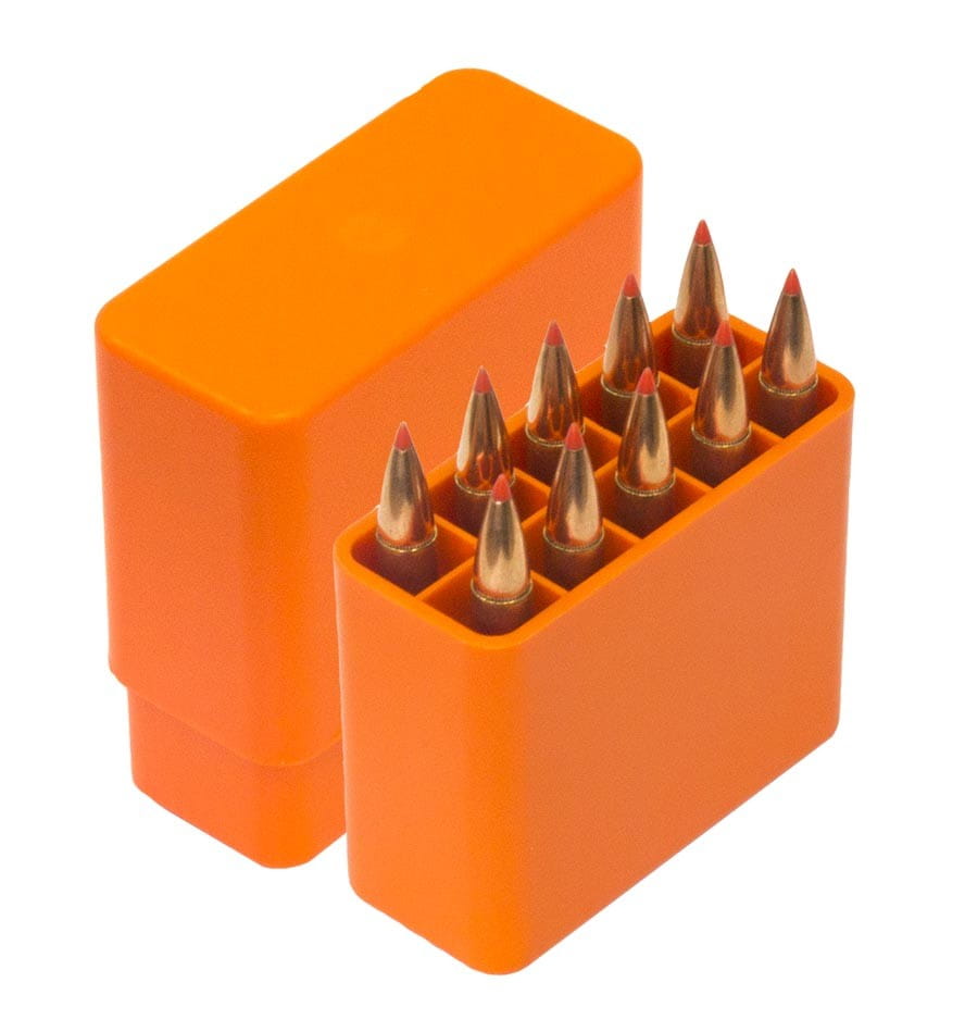 Właściwości: - Nadaje się do wkładów 222 Rem Magnum - 9,3 mm - Pojemność: 10 sztuk amunicja karabinowa - Kolor: pomarańczowy - Wymiary: 11,5 cm x 11,5 cm x 3,5 cm