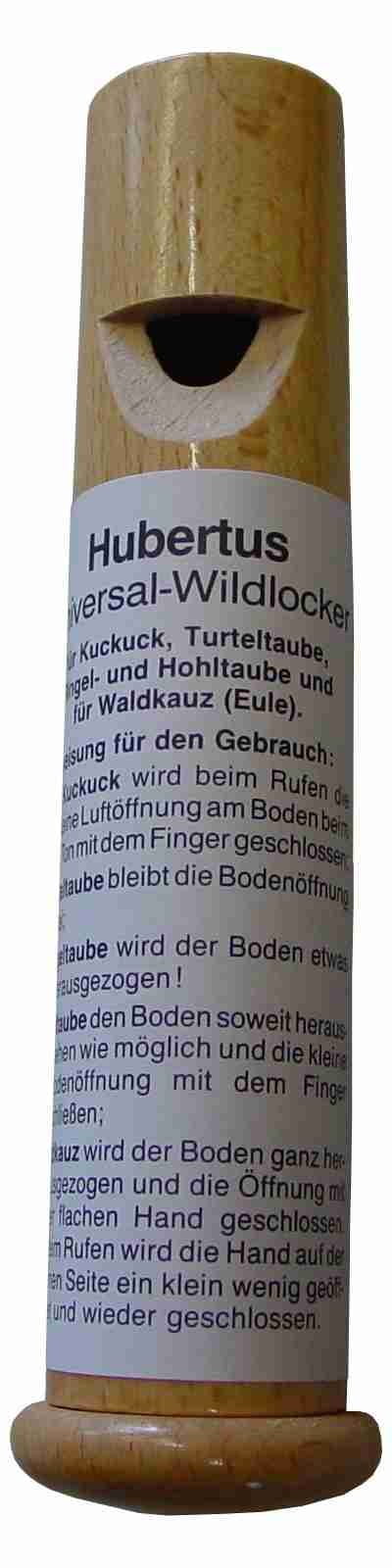 Na tym cylindrycznym drewnianym wabiku można łatwo imitować pięć różnych dźwięków ptaków . W ten sposób jest możliwe przywabienie: gołębia, turkawki, puszczyka (sowa), kukułki.